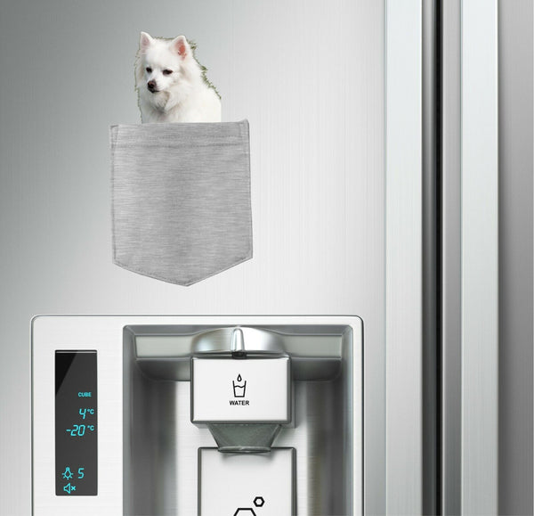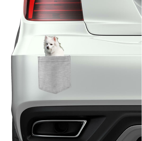 American Eskimo Dog in pocket Fridge Car Magnet Bumper Sticker App size 4"x7"