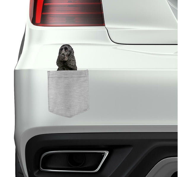 English Cocker Spaniel in pocket Fridge Car Magnet Bumper Sticker App size 4"x7"