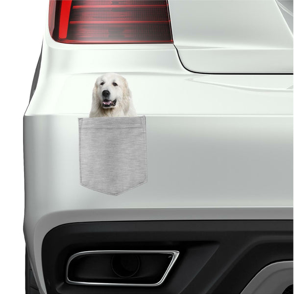 Great Pyrenees Dog in pocket Fridge Car Magnet Bumper Sticker App size 4"x7"