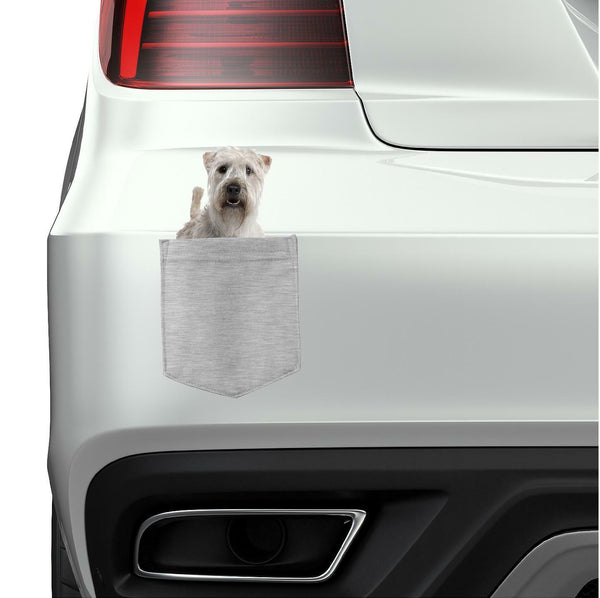 Soft Coated Wheaten in pocket Fridge Car Magnet Bumper Sticker App size 4"x7"