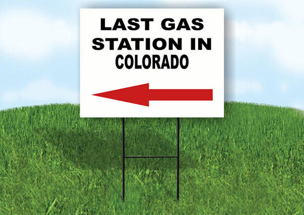 COLORADO LAST GAS STATION LEFT ARROW Yard Sign w Stand LAWN SIGN Single