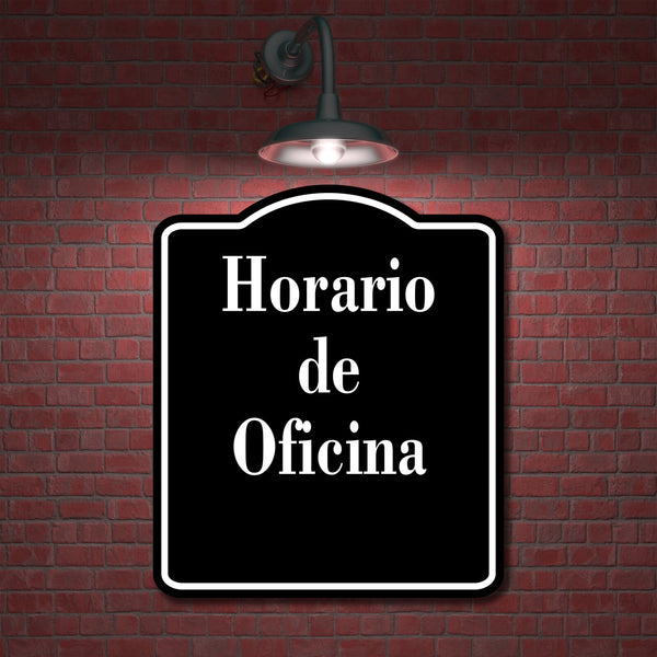 Horario de Oficina Spanish firmar BLACK Aluminum Composite Sign