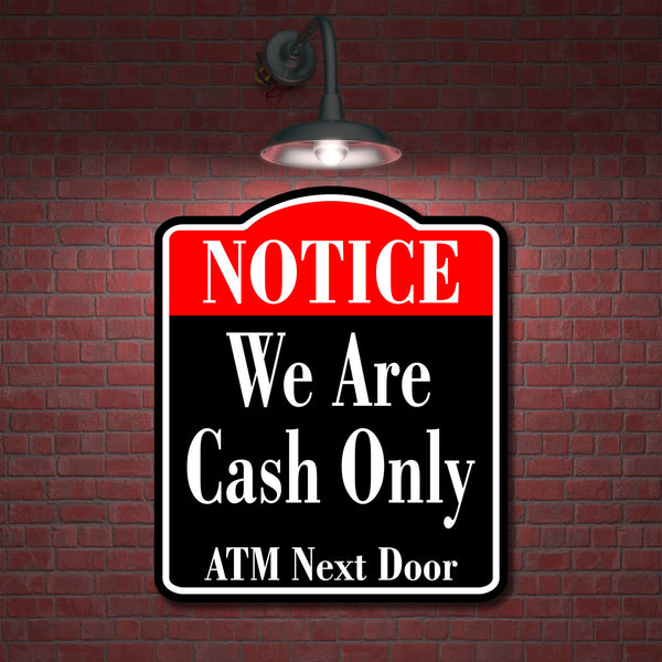 Notice We Are Cash Only ATM Next Door BLACK Aluminum Composite Sign